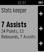 Health & FitnessKeeping track of your performance while playing basketball has never been easier. Register points, rebounds and assists and try to earn a triple-double like your favourite NBA star. Function: - Points: UP - Rebounds: SELECT - Assists: DOWN - 3 pointer: UP-(longpress) - Block: SELECT-(longpress) - Steal: DOWN-(longpress)