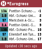 DailyGives bus schedule info for the ASEAG bus network (Aachen, Germany region). Functionality: - Shows up to 21 next buses (7 per page) - Use up/down buttons to flip pages - Select between automatic or manual bus stop selection ('*' next to bus stop name on main screen indicates manual selection) 1. Press middle button to go to selection screen 2. Select desired bus stop using up/down buttons 3. Confirm selection using middle button - Shake watch to trigger update (automatic trigger every 30 seconds) - Color highlights for every bus stop line for faster scanning of list