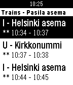 DailyWith this (must have) application you can check if the Finnish (VR) trains are on schedule. It will show scheduled times and if the train is late it will tell how many minutes you have to wait. This is something like beta or "minimum viable product". In future releases you can save your favorite stations and quickly select which station you want to see, use your phones GPS to determinate which station is the closest one, and so on. At the moment you have to input stations by their short calling codes. You can find the list here: https://www.vr.fi/cs/vr/fi/asemien_lyhenteet USAGE: Install app Add station with phone (Shake to update timetables) Profit??