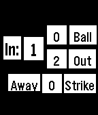 Tools & UtilitiesA simple ump clicker for softball UP increments balls SELECT increments outs DOWN increments strikes If BACK is (single) pressed it will take you back to the last state (i.e. if 4 balls so a walk, will take back to 3) or if 3 outs (which changes innings) will take back to 2 outs. After 7 innings it's possible to press SELECT when TIE? is displayed and then the game can continue.