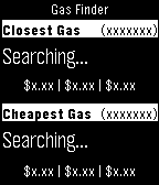 DailyThis watch app will easily allow you to find the closest & cheapest gas station to your current location. Launch the app and it will start searching for the closest gas station - when found it will display the station name, distance & direction from your current location and regular, premium and diesel prices (if applicable). It will then start to search for the cheapest gas station in a 10 mile radius - when found it will display the station name, distance & direction from your current location and regular, premium and diesel prices (if applicable). All data retrieved from http://www.mygasfeed.com/