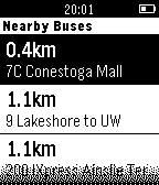 DailyCheck real time bus times and distances for GRT in the Kitchener/Waterloo area! - Click on a Nearby Bus to see Delay and Upcoming Stops - Click on a Nearby Stop to see Upcoming Buses