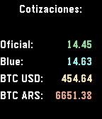 DailyDolar y Bitcoin Argentina muestra la cotización de USD y BTC, extraidos en tiempo real de Bluelytics y Coindesk. Use los botones Up y Down para actualizar las cotizaciones