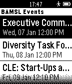 Tools & UtilitiesDisplays the next 10 upcoming events from the Bar Association of Metropolitan St. Louis (BAMSL). Learn more about BAMSL at http://www.bamsl.org. Releases v1.3: Corrects time display of events after 12:00 p.m. v1.2: Disabled feed cache to resolve issue with outdated feed. v1.1: Added detail cards for event Menu items, and shake or tap to refresh menu. v1.0: Initial release.
