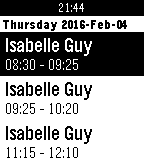 Health & FitnessA simple calorie counter. - Press the up button to add calories. - Press the down button to correct your entry before you will save. - Press the middle button briefly to save your input. - Press the middle button long to clear your inputs. Ein einfacher Kalorienzähler. - Drücke den oberen Knopf um Kalorien hinzuzufügen. - Drücke den unteren Knopf um deine Eingabe zu korrigieren bevor du sie speicherst. - Drücke den mittleren Knopf kurz um deine Eingabe zu speichern. - Drücke den mittleren Knopf lang um deine Eingaben zu löschen.