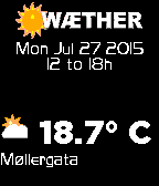 DailyWæther is a weather display app. Its main feature is that it gets its weather information from the Norwegian Meteorological Institute. Features: - Celsius or Fahrenheit; - forecast for the next days (mostly 10 days); - up to 2 favorite locations + current location (gps-based); - Wind speed (mps) and direction + sunrise and sunset time (by pressing the select button) - Rain precipitation (mm) Data from The Norwegian Meteorological institute. Names for geolocating provided by Google. Symbols provided by yr.no. I'd appreciate any feedback with suggestions of improvement - and if you use it, please "like it" here and I'd be happy if you consider a $1 donation.