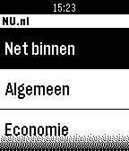 DailyMet de NU.nl app voor Pebble, blijf je ook via het kleinste scherm op de hoogte van het laatste nieuws. Kies voor de rubrieken Net binnen, Algemeen, Economie, Tech, Sport, Entertainment en Overig, en klik op een titel van een artikel om het te openen. Klik op de knoppen aan de zijkant om naar beneden te navigeren.