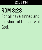 Tools & UtilitiesA simple reference app to help share the gospel. Features: - Collection of key gospel verses arranged in order of gospel presentation - Summary view with just a verse reference and a short description so you can take a quick look at your wrist and open your preferred bible. - Press select in the summary view to view the verse itself (handy if you don't have a bible with you) - Long press in summary view to see a short explanation of the verse (just in case you find it difficult to explain the verse yourself).