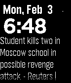 DailyPair your watch at Pebcast.com, to start streaming News alerts, Weather forecast, stock quotes, emails, etc to your watch. Select your news sources at Pebcast.com, pick from the available list, or add your own (any News website/Blog that supports RSS feeds - most of them do!) . Or, build your own cast in minutes, and start to broadcast your own messages to all Pebble users!