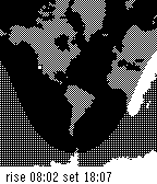 DailyA day/night map of the world showing a user-defined location and approximate sunrise/sunset times for that location.