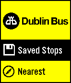 Tools & UtilitiesDublin Bus information stop and route information for Ireland's capital, straight to your Pebble Time. Features: - List of nearest stops - List of saved favourite stops - Shake to reload list of buses due From the 'Nearest Stops' list, long press the middle button to save the stop, to remove it long press the stop in the 'Saved Stop' list. All feedback welcome: https://twitter.com/paddy2k