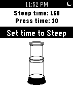 Tools & UtilitiesA timer for French press, Aeropress and plunger coffee, with animated Aeropress! Set steep time and press time with the up and down buttons, then confirm each with the select button. The Pebble's vibration feature lets you know when to start applying pressure, and when your Aeropress coffee is done.