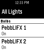 RemotesControl your LIFX bulbs from your Pebble Watch. Currently supports bulb name discovery as well as on/off commands. This app will not work without the companion app on Android. This app is powered by the recently released LIFX Android SDK.