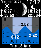DailyTide Table Chart provides quick and easy access to high and low tide forecasts. Click Up / Down for high and low tides of the next day. Double click Down to play an animation of moon phase and tide changes for a quick overview. This Pebble app can be used without connection to your phone. But you should run the phone app Tide Table Chart (Android or iPhone) once per week to update the tide data on your watch. DISCLAIMER - Tide data displayed by the app are based on astronomical tide predictions and do not take into account the effects of strong winds, rain, floods and other meteorological events. Do NOT use the app for navigation or any other purpose that may result in personal injury or property damage. Use it at your own risk.