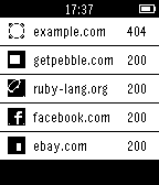 Tools & UtilitiesMonitor the status of your websites from your Pebble device. SiteStatus displays a configurable list of sites, each with a green (up) / red (down) status and HTTP status codes returned from the most recent GET requests. Quickly refresh all statuses by clicking the "select" button.