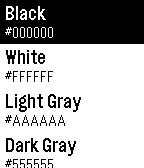Pebble Round 2This app shows you colors with their hex codes and an example how that color looks on the Pebble Time.