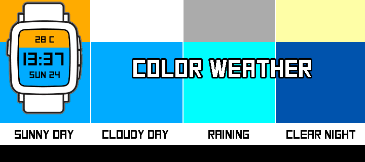 Free! --- COLOR WEATHER No weather icon, the weather condition is represented by a unique 2 colors combination: one for sky and the other for ambient. AMBIENT +Day: light blue +Night: dark blue +Overcast: gray +Rain: cyan +Snow: white +Fog: gray SKY +Sun: orange +Moon: yellow +Clouds: white +Rain: gray +Thunders: purple - Weather temperature units (C, F, K) - Vibes on phone disconnect (yes, no) - Show day of week (spanish or english) - Multiple font styles: + Thick (original watchface design) + Slim LAYOUT FOR THE B/W Pebble: AMBIENT +Day: white +Night: black SKY +No weather condition alert (clear, partly cloudly): the same color as ambient +Weather condition alert (overcast, rain, thunder, snow, fog): inverse color to the ambient Designed and developed by dP-faces https://dp-faces.com/ --- Get the Premium Pack for a great price — it includes all current paid watch faces and any future ones I release. Thanks so much for your support! ❤️ https://bit.ly/dp-pebble