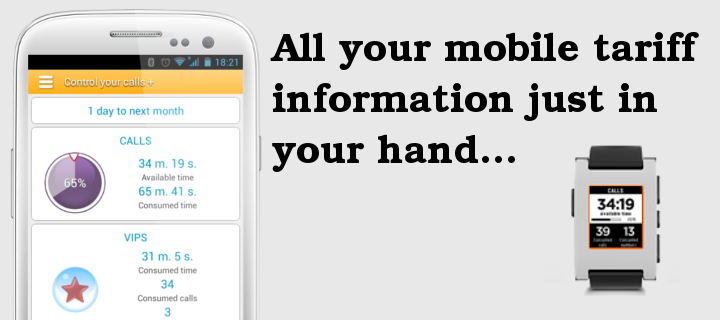 See on your Pebble your tariff consume of time, sms and internet data. Configure in the android app your tariff limits to save a lot of money. Receive on your Pebble the consume warnings, and speak freely knowing always the remaining time you still have.
