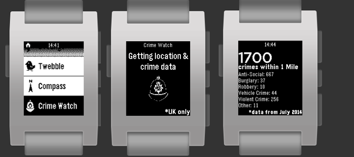 CrimeWatch gives you historical crime statistics for your current UK location. This includes all crimes within a 1 mile radius, for the last available month. (usually 3 months ago).