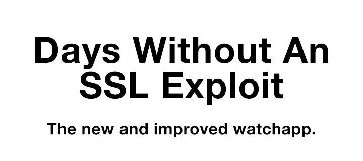 Quickly get the days since our last SSL incident (such as Heartbleed) from dayswithoutansslexploit.com
