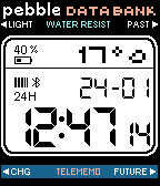 Color Watchface based on Casio Data Bank 31. All the watchface code (almost everything) is taken from 91 Dub watchface (maybe the best watchface on Pebble Store). So this is my little contribution. Now you can choose between Spanish, English, French, Italian, German, Portuguese and Dutch and change other features. Spanish Color Watchface based on Casio Data Bank 31. All the watchface code (almost everything) is taken from 91 Dub watchface (maybe the best watchface on Pebble Store). So this is my little contribution. Watchface en color basada en el Casio Data Bank 31. Todo el código del watchface (casi todo) está basado en la watchface 91 Dub, posiblemente la mejor watchface de la Pebble Store. Esta es mi pequeña contribución.