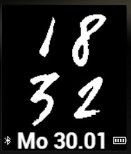 Created by http://www.watchface-generator.de/ Vibriert bei Verbindungsabbruch, Watchface wird dann invert Wochentag (deutsch), Tag und Monat pencil, brush, handwriting