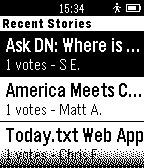 Browse top and recent stories from Designer News. Press the select button to view more details about a story. Long press to switch between the front page and recent story feeds.
