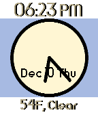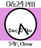 Digilog is a color changing digital and analog watchface that tells the time, current weather, day of the week, month, and day of the month.