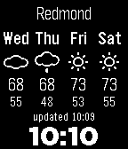 Digital watch with weather and health data summary, and forecast, with two shakes of the wrist. Select which health data to display. Additional Premium Features: - Select from 16 color combinations - Weather Underground data that is much more accurate than the free Open Weather - Second timezone - Language - Bluetooth disconnect alert - Low battery alert - Hourly vibe - Do not disturb