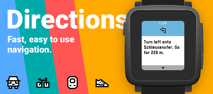 Directions is a fast and simple navigation app. Select how you want to travel, speak your destination, and get a list of instructions that guide you there. Directions for cars, bicycles, public transit, and pedestrians are available. New features: • Automatic navigation for bicycles and pedestrians (BETA, please report any problems below) • You can add up to five favourite locations from the config page If you want to give feedback, report a bug, suggest a new feature, or experience problems with automatic navigation, consider submitting the google form linked as the website below :) The directions are powered by the HERE API. For more information about HERE visit https://developer.here.com