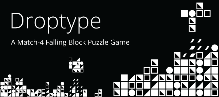 Droptype is a unique match-4 falling block puzzle game. Try making chains under pressure while keeping yourself from overflowing, or just drop blocks and watch them clear themselves.
