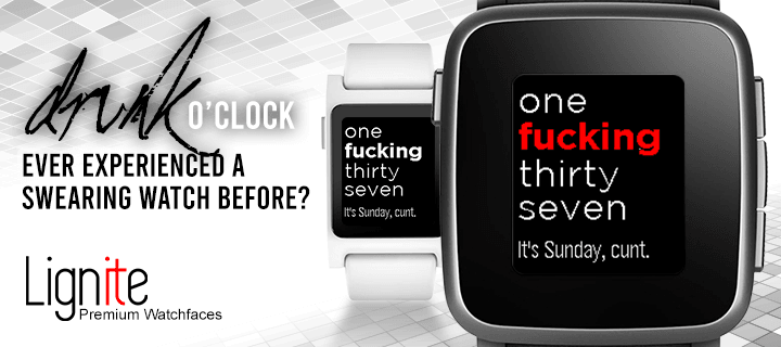 Celebrating ten years of Pebble being drunk: we rewrote Drunk O' Clock from the ground up! ๐ Add a little spice to your day with this classic watchface that swears at you! Customize each damn word. View the fucking weather. Look at your shit health stats. Colour it to be as dark as your soul. And more, all in the thing's settings, you ass. ๐ค If you like Drunk O' Clock, then give it a damn heart. ๐ค -- You'll get a trial, but really we just want your money. Buy the thing for US$1.99. It's just two dollars, what are you, a little bitch? We spent like hundreds of hours rebuilding all of our stuff from the ground up. Show a little gratitude and open your wallet, you prick.
