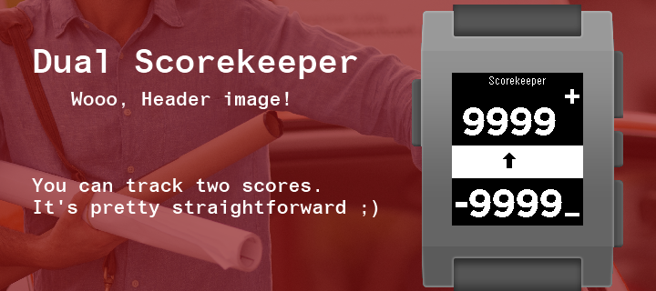 Keep track of 2 player's scores with this app on your watch. Scores are saved to the watch when switching apps Select button (middle click) to select which counter is being toggled. Hold down Select to clear both counters.