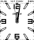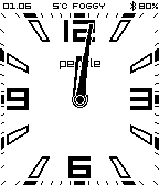 Sharp style analog watchface, features: - configuration window - weather - bluetooth status / phone lost warning - pebble batery status - hourly vibrations - second hand activated by shake