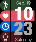 EgoCycle watchface displays today's personal biorhythm. Green, red, blue and rosewood bars represent physical, emotional, intellectual and intuitive cycle respectively. The higher a bar, the stronger the person feels in that domain. Critical days are marked with a warning icon. Enjoy! Made with ♥ in Italy Credits: * Icons made by Freepik from www.flaticon.com * Thanks to Zed Karkar for his idea of using time of birth in addition to date of birth * Thanks to Gilles P for his feature suggestions