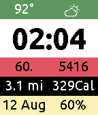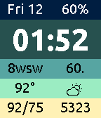v1.6 Adds support for Pebble 2, updates how complications display on Pebble Time Round watches, fixes several bugs, and makes some improvements to save battery life. Eight-frame is a watchface with eight customizable complication slots. I designed it to enable quick access to data while saving swipes, clicks, and pushes. By sticking to mostly text, the watchface displays a large amount of data while limiting visual clutter. All eight complication slots can be filled or left blank as desired, and complications can be displayed multiple times. Eight-frame has 12 weather and fitness complications, and most are self-explanatory. The exceptions: - Wind gauge displays wind speed in mph (Imperial / UK), m/s (Metric), or km/h (Canadian), and appends the bearing - Precipitation gauge displays chance of precipitation as a percentage, and adds a period or exclamation points to indicate increasing severity. A . indicates insignificant precipitation, ! indicates drizzle, !! indicates light precipitation, and !!! indicates moderate to severe precipitation. So, 45!! means that there is a 45 percent chance of light precipitation at some point in the next 24 hours, and 90. means that there is a 90 percent chance of insignificant precipitation. - Active calories burned refers to the number of calories burned while active as measured by the Pebble watch. This does not include sedentary calories or calories that Pebble did not consider as part of a workout. To use the weather complications, you will need a free Dark Sky API key, available from https://darksky.net/dev/register