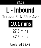View arrival times for San Francisco MUNI lines at a glance on your Pebble. Get started by downloading Entransit for iOS so you can select your stops.
