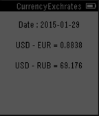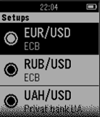 Show currency exchange rates for today ver 3.4: Improved perfomance during app loading data Some bugs during data loading fixed ver 3.3: Some bugs fixed ver 3.0: Brand new design! Separate page for each currency rate and history data for the last 7 days is available now Setup page is avaliable now too! Click "Select" button and select the currency rates you interested in ver 1.1 ( USD - EUR, USD - RUB) ver 2.0 New UI design ver 2.2 UAH/USD curreny was added; In total 3 currency ver 2.3 fix in EUR/USD exch rate exchange rates left: EUR/USD USD/RUB UAH/USD Thanks to https://api.privatbank.ua/api-info/exchratenbu.html and fixer.io for provided currency rates.