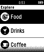 Explore for Pebble lets you browse nearby venues on your watch. Explore provides you with detailed information about venues like rating,distance from your current location and address of the venue. You can also forward venue directions to your Android Phone from your Pebble Watch. (Requires the Android Companion App to be installed)