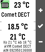 This watchapp shows status information and helps you control your FRITZ!Box Smart Home. First open the configuration page and enter your login data. F!B-Switch supports english and german (description below). Use the select (middle) button in the menu: - short -> show details - long -> switch on/off Turn on the fast switch mode to change the short/long usage. Works on FRITZ!Box with Smart Home Support (>=FRITZ!OS 6.20). Before using https, please install the certificate on your smartphone. Feel free to contact me and if you like this app, you're welcome to donate via configuration page. This app and the developer are not associated with FRITZ! GmbH, Berlin (http://www.fritz.com) -- Deutsch -- Die App zeigt Statusinformationen und hilft bei der Steuerung deines FRITZ!Box Smart Home. Bitte zuerst auf der Einstellungsseite die Zugangsdaten eingeben. Funktion der mittleren Taste im Menü: - kurz -> Detailansicht - lang -> Schalten Mit eingeschalteter Schnellschaltung wechselt die Funktionsweise. Funktioniert auf FRITZ!Box mit Smart Home Unterstützung (>=FRITZ!OS 6.20). Vor der Nutzung von https, bitte das Zertifikat auf dem Smartphone installieren. Sende einfach eine Mail, wenn es Fragen gibt, und wenn Dir die App gefällt, freue ich mich über eine Spende (über die Einstellungsseite erreichbar). Die App und der Entwickler sind nicht mit der FRITZ! GmbH, Berlin (http://www.fritz.com) verbunden. -- Supported Devices/Unterstützte Endgeräte -- FRITZ!Smart Energy 200/210 FRITZ!DECT Repeater 100 AVM FRITZ!Powerline 546E EUROtronic Comet DECT (>=FRITZ!OS 6.35)