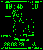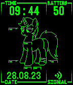 For all FoE fans, a PipBuck watchface! It displays current time, battery charge, date and connection status. It also features Littlepip, main character of Fallout:Equestria fiction. Her health status depends on current battery percentage, so remember to charge your Pebble!