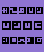 This watchface is based off of the writing system used in the video game Fez. Time is in the center, 3 letter month in the top left, day number in the top right, battery percentage in the bottom left, and 3 letter week day in the bottom right. Here are links on how to read the numbers and the alphabet, respectively: http://www.ign.com/wikis/fez/Fez_Numbers http://www.ign.com/wikis/fez/Fez_Alphabet 12 hour and 24 times are supported.