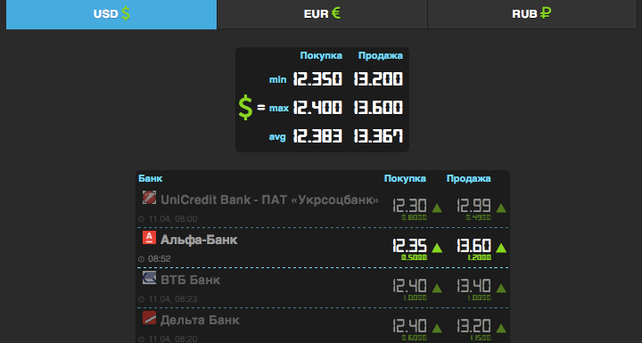 Exchange rates of Ukrainian banks! Курсы гривны на Ваших часах :)