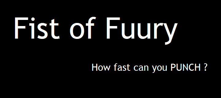Can you punch faster than Bruuce Lee ? Challenge yourself with this game ! Developed by : Yiqian Hui, Peh Yee Woon and Suan Hui Pu University of Southampton Malaysia Campus