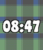 Displays the time, no tricks. The background is a plaid pattern that's generated based on the current date and time. The color scheme is generated based on the current season.