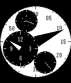 Main minute dial with floating hour, day / date and seconds dials. Fully configurable version available from "website link" in Pebble Appstore or http://gumroad.com/l/yEVc