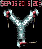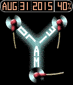 Flux capacitor tells the time - hours top left, minute top right and AM/PM at the bottom.