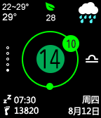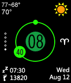 Now supports (Include setting page) - English, 中文, Español, Deutsch, Français, Italiano Galaxy Stone is a premium watchface that include fantasy style and many new features. The watchface includes the following features, all of which can be disabled/enabled as you please. --The perfect combination of traditional and smart watch's advantages, see time is easy. --Support Health Fitness Tracking for all pebble watch models, include pebble, pebble steel, pebble time, time steel, time round, pebble 2, pebble time 2 ... --You can get weather by current location or specify city name in setting page. --You can select different weather source, current include OpenWeatherMap, Yahoo Weather, Chinese Weather. --Show three days weather forecast information only need shake your wrist. --Battery level indicator --Bluetooth disconnection and vibration --Timing vibration by setting (hourly, 45/40/30 minutes) --Not timing vibration time period support --You can choose different color style -- Show today Constellation This is only a start, we will continue add new features soon! Please click the heart if you like it! Thank you! 这款作品名叫“银河石”,她采用了独特的圆环和小球设计,分钟和秒钟的位置像机械手表一样变化,同时巧妙的加入了数字显示,让您对时间了然于胸! 能够同时显示日期、星座、今日天气、后3天天气、温度、空气质量、健康、蓝牙、电量等多种指数,同时可以对任意指数进行开关。 同时本作品对布局和表达方式都进行了新的尝试! 如果您喜欢请强烈点赞红星!