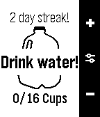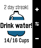 Challenge yourself to drink more water for better health! Health experts recommend drinking at least a half gallon (8 cups) of water every day. Drinking enough water can help you lose weight by controlling your appetite, boosting your metabolism, and aiding your digestion. Is 8 cups a day too easy for you? Aim for a whole gallon of water! In the 30-day water challenge, you challenge yourself to drink a gallon of water every day for 30 days straight. People who have completed this challenge report a wide range of beneficial results, such as weight loss, more energy, less headaches, better mood, softer hair, and healthier looking skin. With Gallon Challenge, you can help yourself drink more water by keeping count of how much water you drink each day, and how many days in a row you've met your goal. The app also keeps track of statistics such as the total amount of water you've recorded consuming and the length of your longest streak. You can customize your drinking goal to be either a half gallon or whole gallon of water each day. The unit that you drink in can be customized to either ounces, cups, pints, or quarts. You can change the hour that your day starts at in case you have an irregular schedule. New in version 2! Set reminders to drink water. You can either choose how often you want to be reminded, or use Auto reminders to let the app evenly space them out throughout the day to keep you on track for reaching your goal. These reminders won't bother you while you sleep, because it uses your "End of Day" setting to know approximately what time you are asleep.