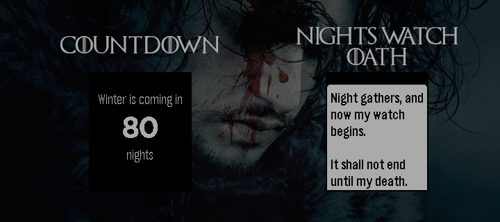 Countdown to the series 6 premiere of Game of Thrones on HBO. Includes the Night's Watch Oath.